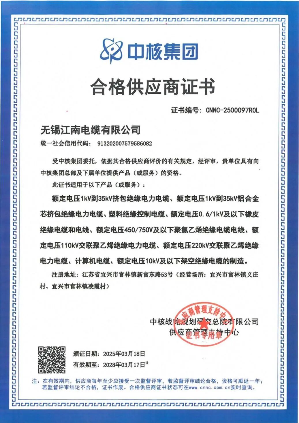 近日,江蘇省企業(yè)信用管理協(xié)會(huì)發(fā)布2024年度省級(jí)“守合同重信用”公示企業(yè)名單,江南電纜再次獲評(píng)“省級(jí)守合同重信用”企業(yè)。