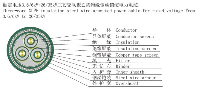 銅芯交聯(lián)聚乙烯絕緣細鋼絲鎧裝聚氯乙烯護套電力電纜 |